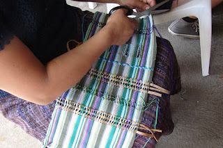 Una vez terminadas las muestras en los tamaños reales hemos trabajado con ellas las costuras que se van a utilizar para unir ambas partes del cubrecojin. La parte de adelante es distinta a la parte de atras es por eso que la costura es muy importante para que el producto sea armonico. Las sugerencias de las mujeres nos han servido mucho para unir las dos partes exitosamente . Otro punto importante son los costados del cubre cojin, hemos trabajado 2 acados distintos (maya y red). El ultimo paso para terminar el producto es desarrollar un cierre apropiado que posiblemente sea un lazo hecho de hilo negro.